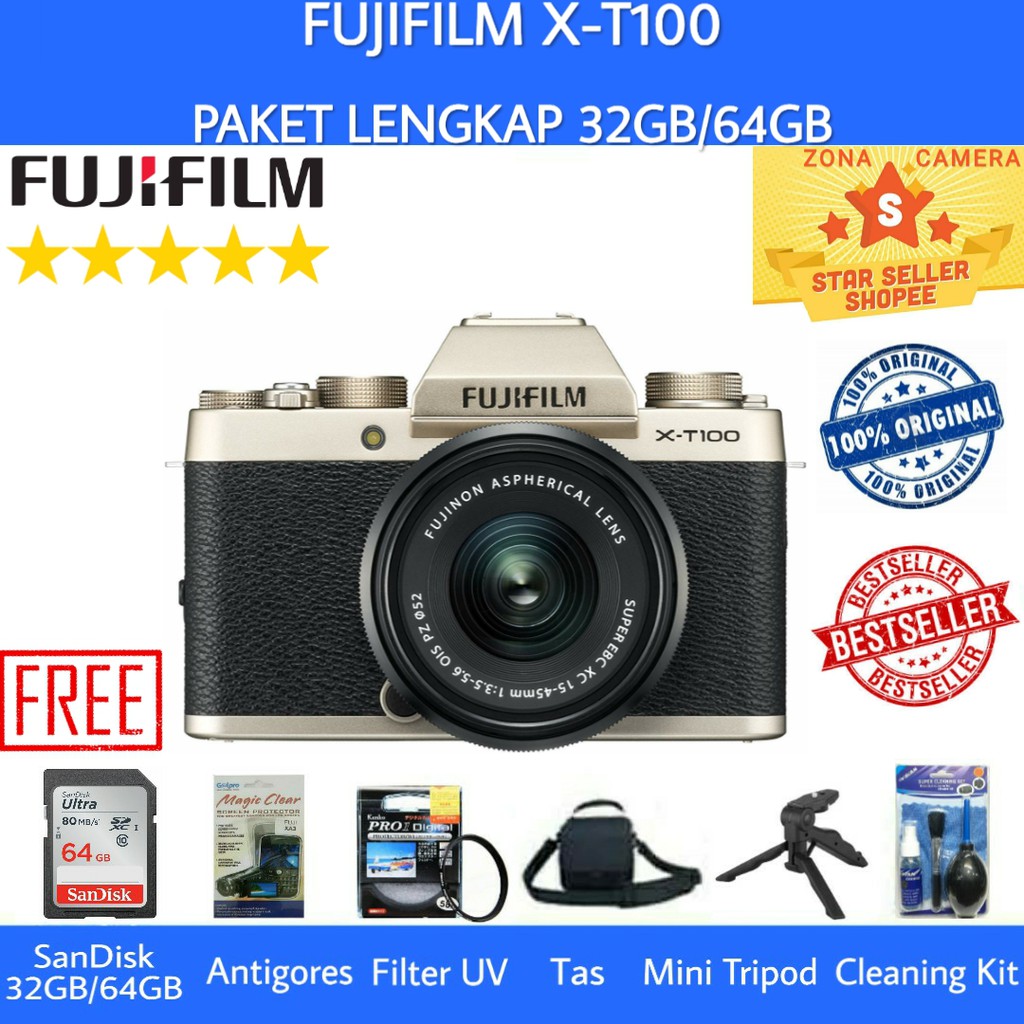 Anda dapat membeli fujifilm x t100 dengan harga terendah senilai rp 5 750 000 dari shopee yang 25 lebih murah daripada fujifilm x t100 yang dijual oleh bukalapak dengan harga rp 7 694 700 anda juga dapat membelinya dari lazada dan tokopedia. Daftar harga kamera fujifilm 2020 terlaris di bhinneka. Fujifilm mirrorless x a5 kit 15 45mm silver. Anda bisa mencari produk ini di toko online yang mungkin jual fujifilm x t100 body.