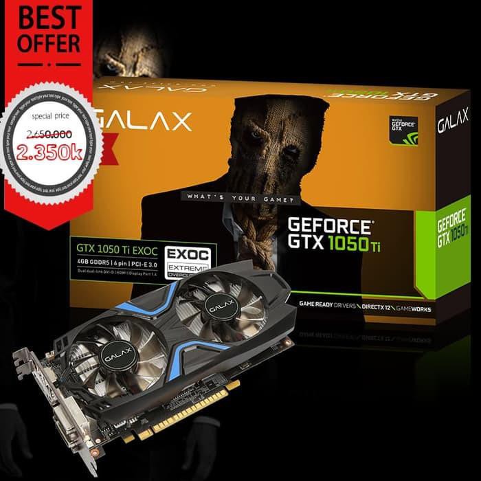 Galax geforce gtx 1050 ti 1 click oc 128 bit ddr5 dp 1 4 hdmi 2 0b dual link dvi d the galax geforce gtx 1050 ti 1 click oc 4gb graphics card is designed for those gamers on a budget but need ti power more memory and ti performance. This 1050 ti has a custom fan and an effective cooling design to keep the gpu cooler and cooler is better.