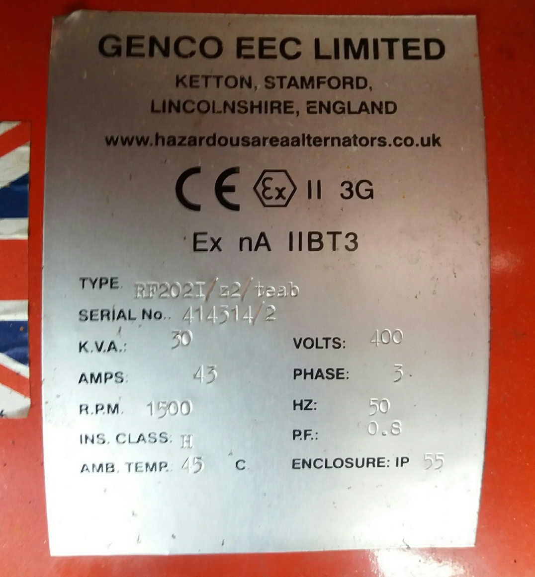 Generator Set Name Plate