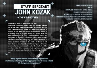 Kozak s blood type is o positive. 5 star 69 4 star 15 3 star 15 2 star 0 0. Obsessed with gadgets and new technology he s the ghosts s point man for all the new tools they re given to work with. It sold for 400 microsoft points.