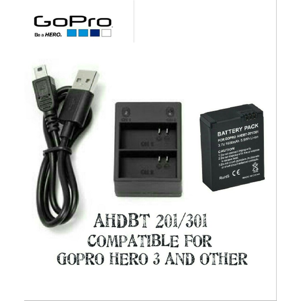 Newmowa 1300mah replacement ahdbt 302 battery 3 pack and rapid 3 channel charger for gopro hero 3 gopro hero 3 ahdbt 301 ahdbt 302 ahdbt 302 battery 3 pack and charger kit 4 6 out of 5 stars 607. Free shipping for many products. An in car lead with connection led is supplied and there is also an adapter to convert the us mains plug to the eu 2 pin type plug. Alternatively you can use a computer usb port.