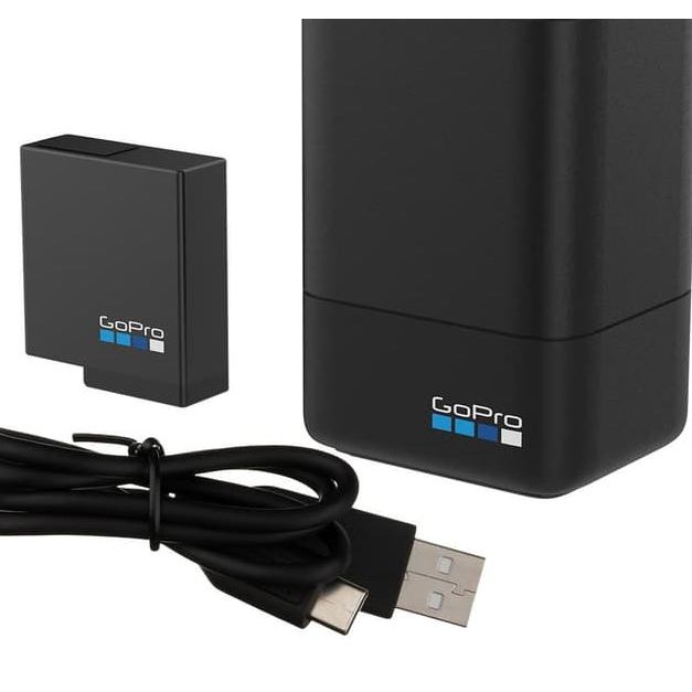 Chargers can be purchased in the gopro store. Usb wall charger that outputs 5v and 1a 5v 2a recommended for hero7 black silver and white hero6 black fusion hero5 black and hero5 session. It charges via most usb ports. Conveniently charge two gopro batteries simultaneously with this dual battery charger and spare 1720mah lithium ion battery for your gopro.