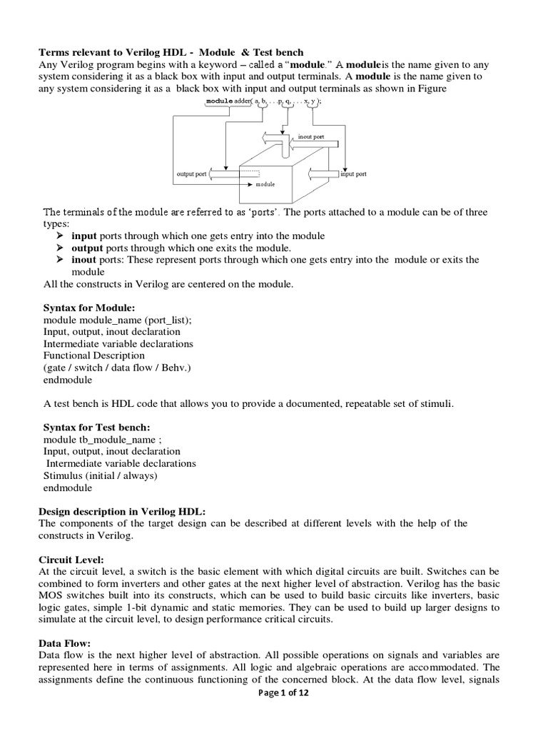 In structural modeling style we defines that how our components registers modules are connected to each other using nets wires. Vlsi design specification using verilog hdl study material lecturing notes assignment reference wiki description explanation brief detail. Small description about gate level modeling style in verilog hdl. The circuit is similar to fig.