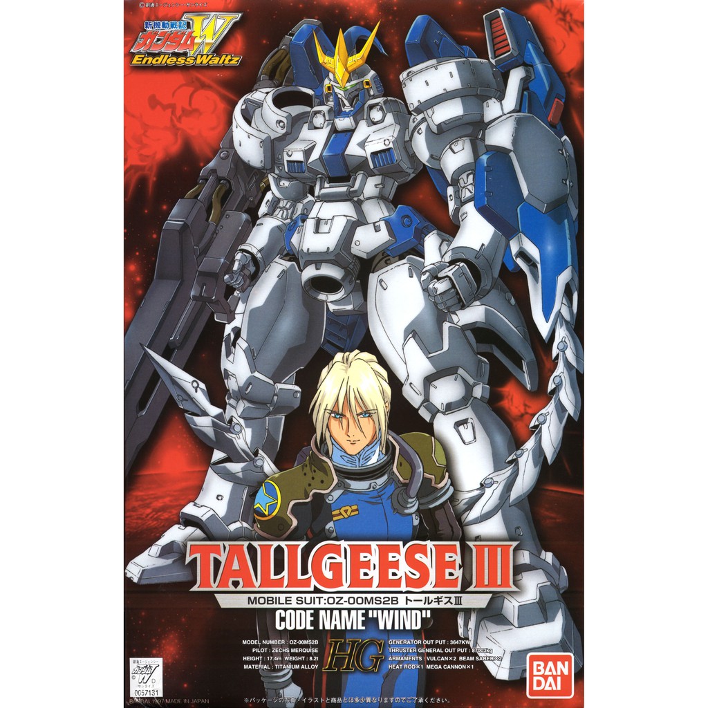 Its primary pilot is zechs merquise. Hg 1 144 tallgeese iii ew v 1998 assembly video duration. The oz 00ms tallgeese is a mobile suit appearing in the mobile suit gundam wing series. Ew 3 hg 1 100 tallgeese iii.
