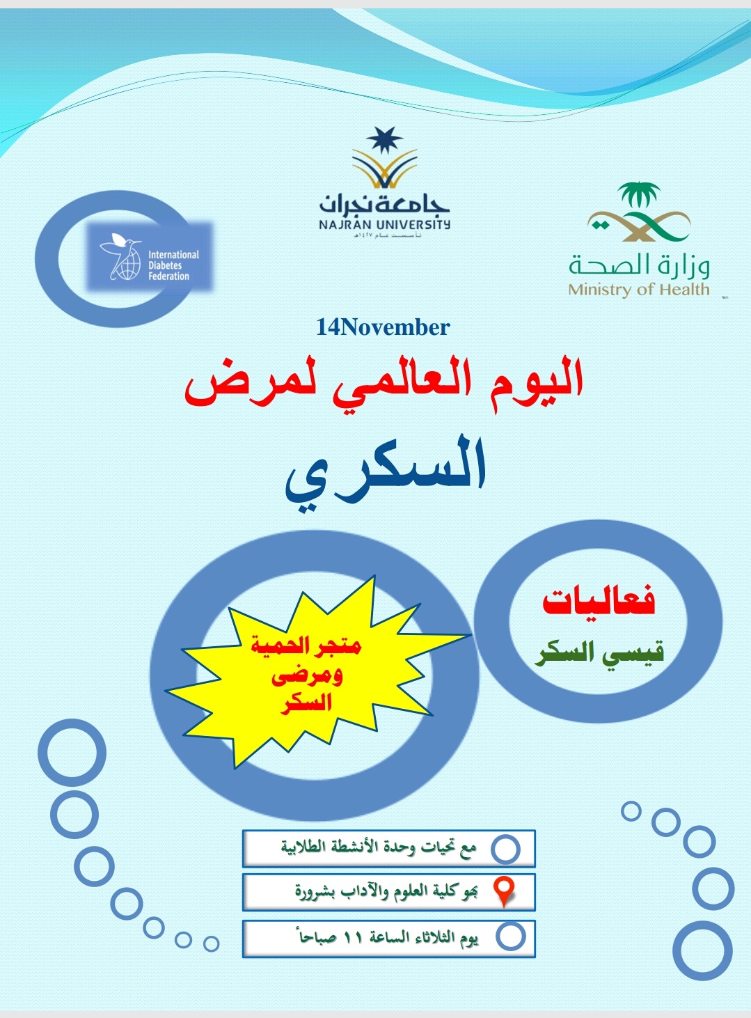 College Of Science And Arts Sharoura اليوم العالمي لمرض السكري أحداث