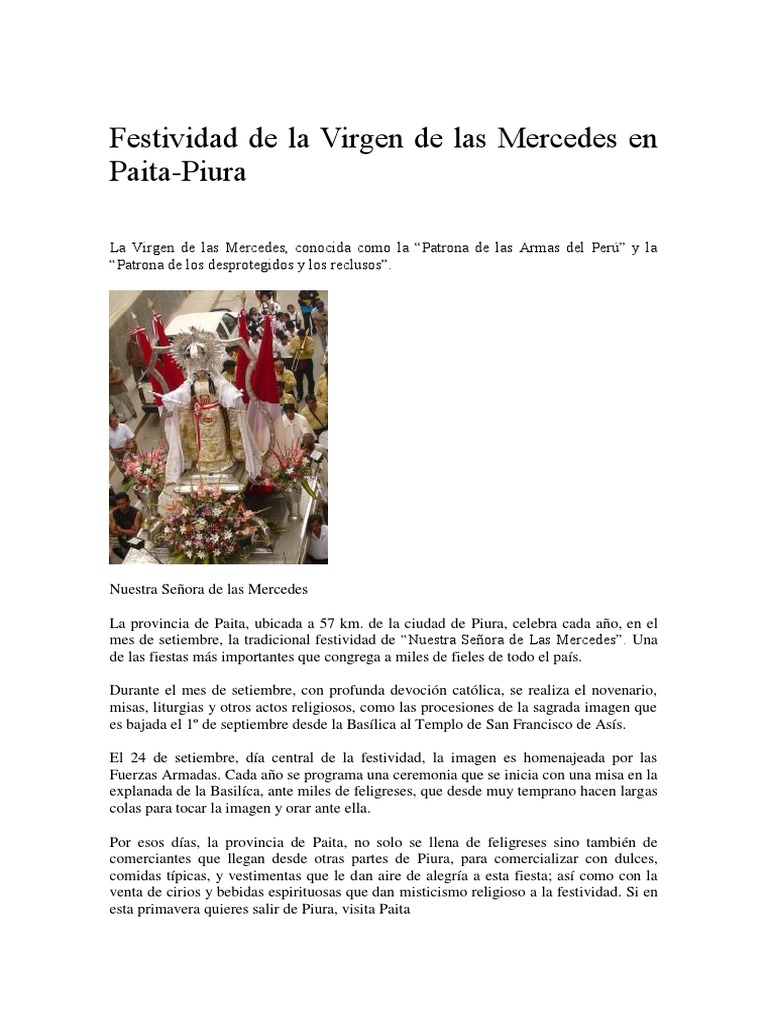 Historia De La Virgen De Las Mercedes De Paita Resumen Corto